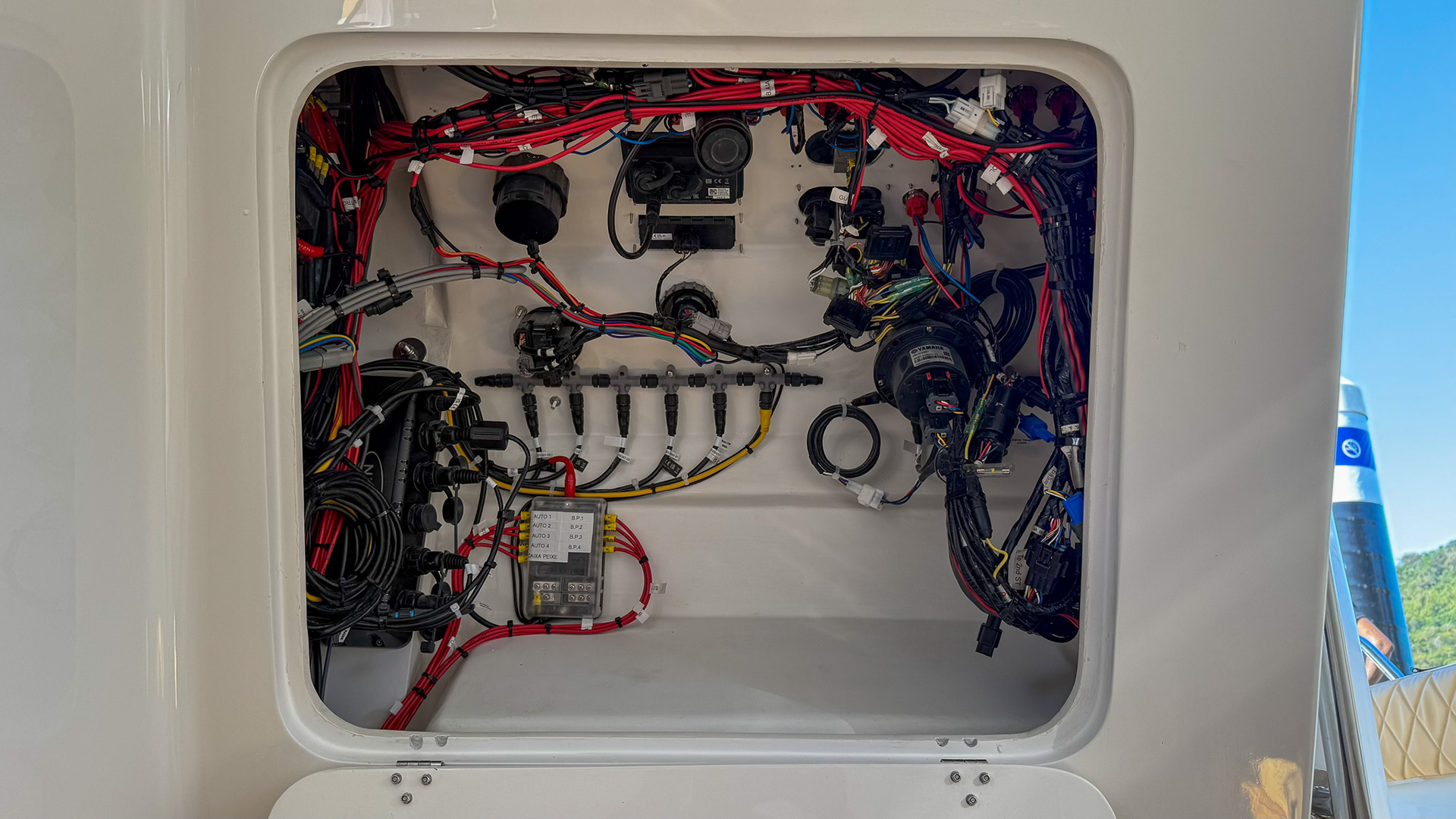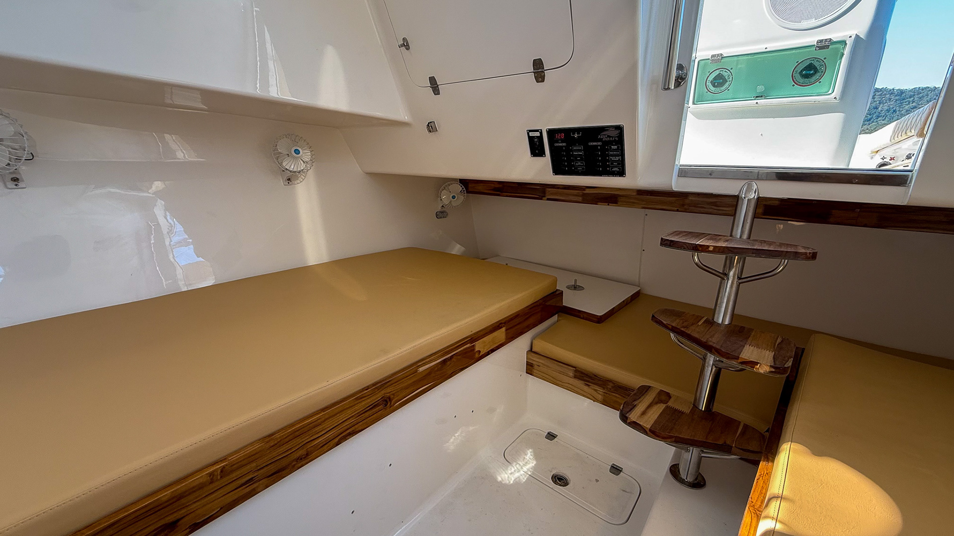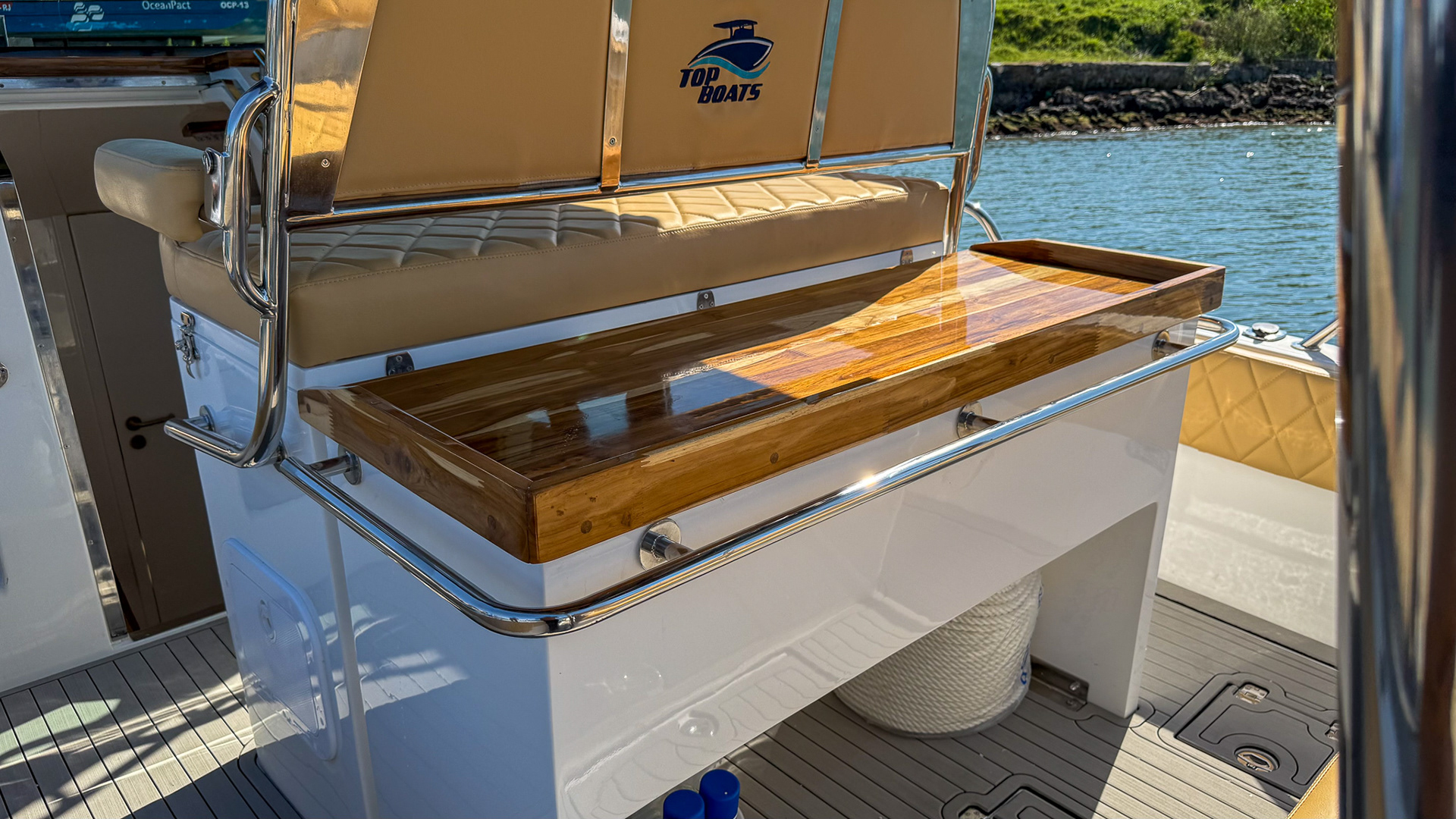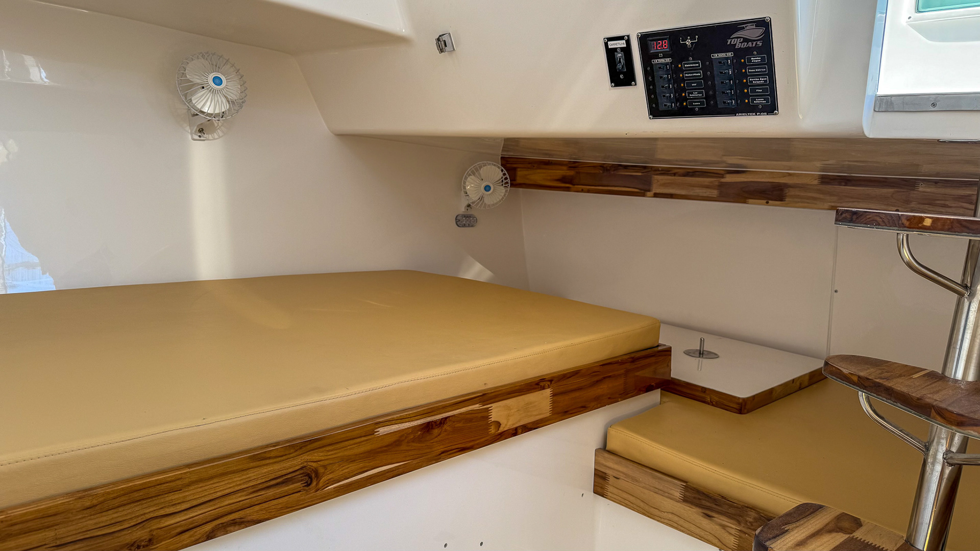 Com capacidade para até 12 pessoas, a Top Fish 375 Custom possui 11,30 metros de comprimento, 3,10 metros de boca máxima e conta com tanque de combustível de 1.100 litros, oferecendo excelente autonomia para travessias prolongadas. O tanque de água doce de 200 litros reforça o conforto a bordo durante longos períodos de uso.