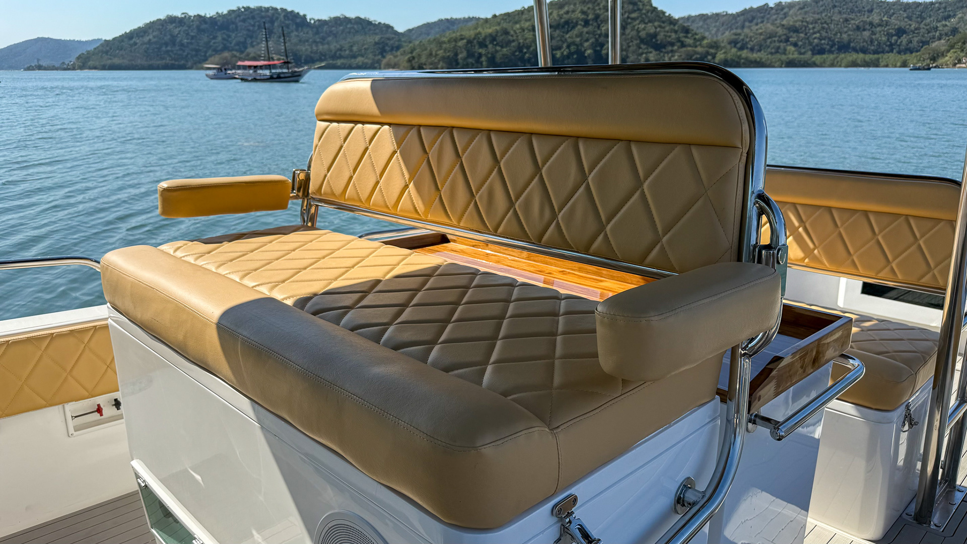 Construída no sistema monobloco, a Top Fish 375 Custom é uma embarcação extremamente seca, segura e estável, proporcionando navegação confortável tanto em condições mais exigentes quanto em momentos de lazer com amigos e família.